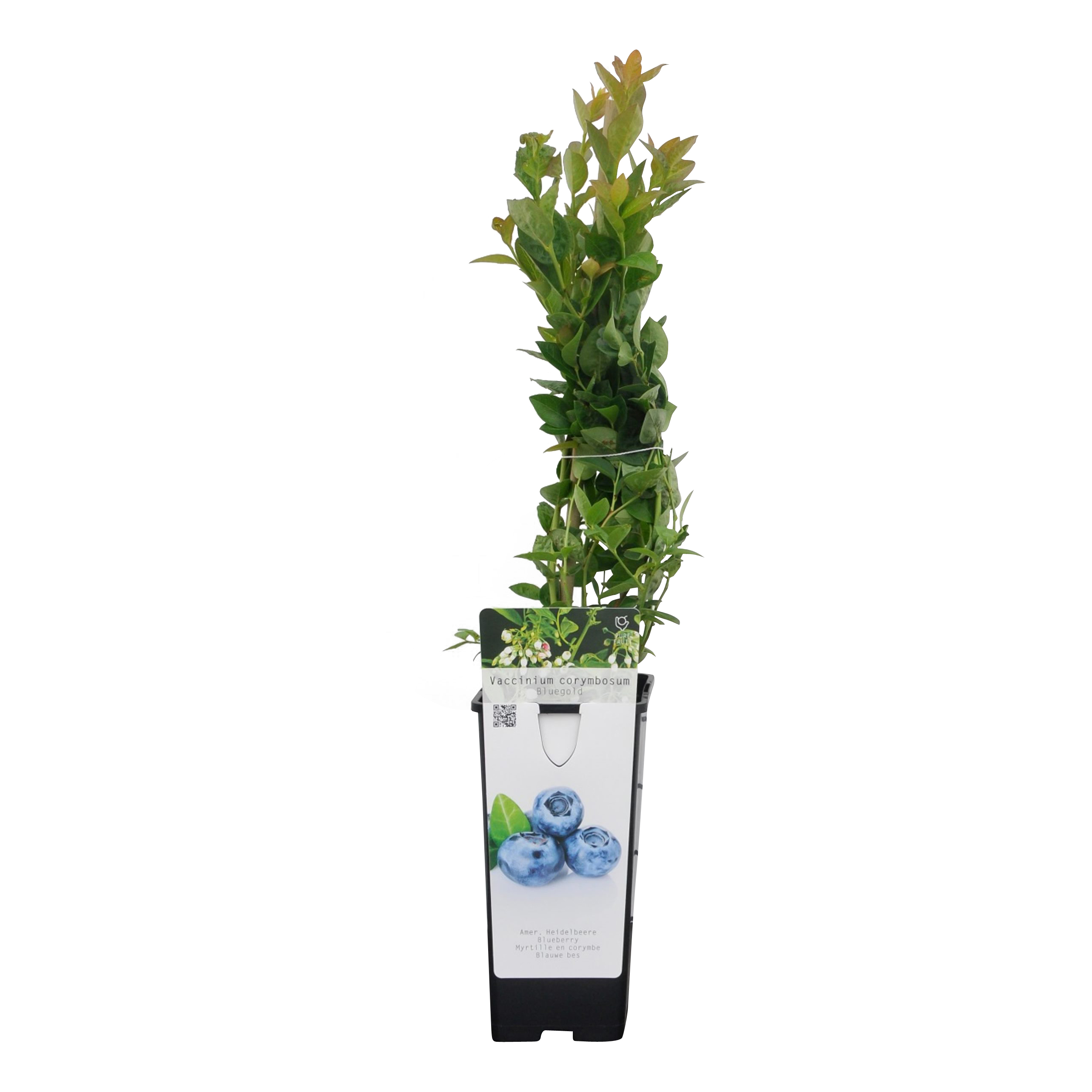 Mit dem Vaccinium corymbosum 'Bluegold' können Sie in Ihrem eigenen Garten frische Blaubeeren anbauen. Dieser Blaubeerstrauch ist selbstbestäubend und garantiert daher einen guten Ertrag, ohne dass eine zweite Pflanze erforderlich ist. Wenn Sie im April und Mai den Garten betreten, können Sie sich an den weißen Blüten erfreuen, die die Pflanze schmücken. Nach der Blütezeit können sich die Blaubeeren entwickeln, die sich von einem blaugrünen Farbton in ein sattes Blau verwandeln und etwa im August gepflückt werden können. Die Heidelbeeren der Bluegold sind noch größer als die der Gemeinen Heidelbeere, was sie sowohl für Vögel als auch für Beerenliebhaber sehr attraktiv macht.