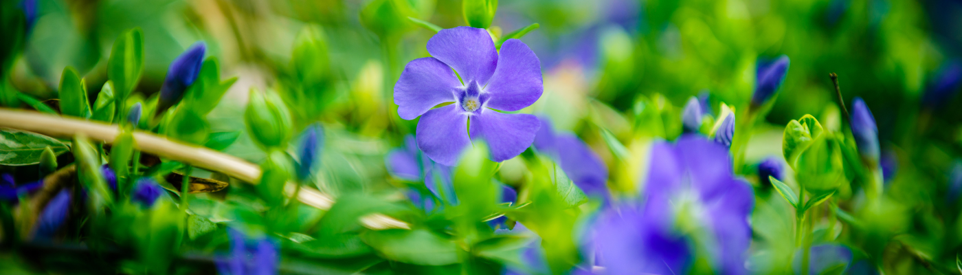 Kleines Immergrün: immergrün und blühend
