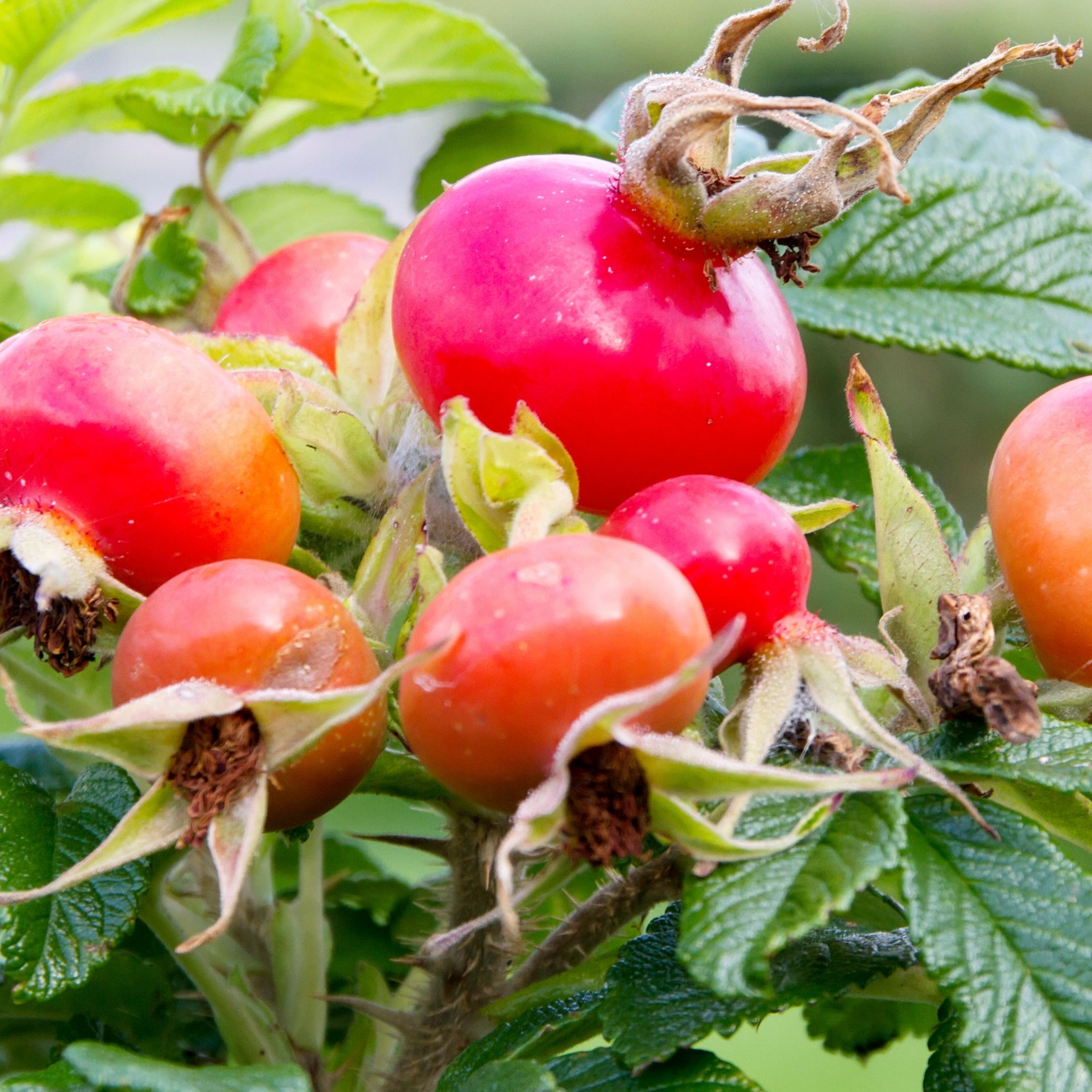 - Essbare Hagebutten.
