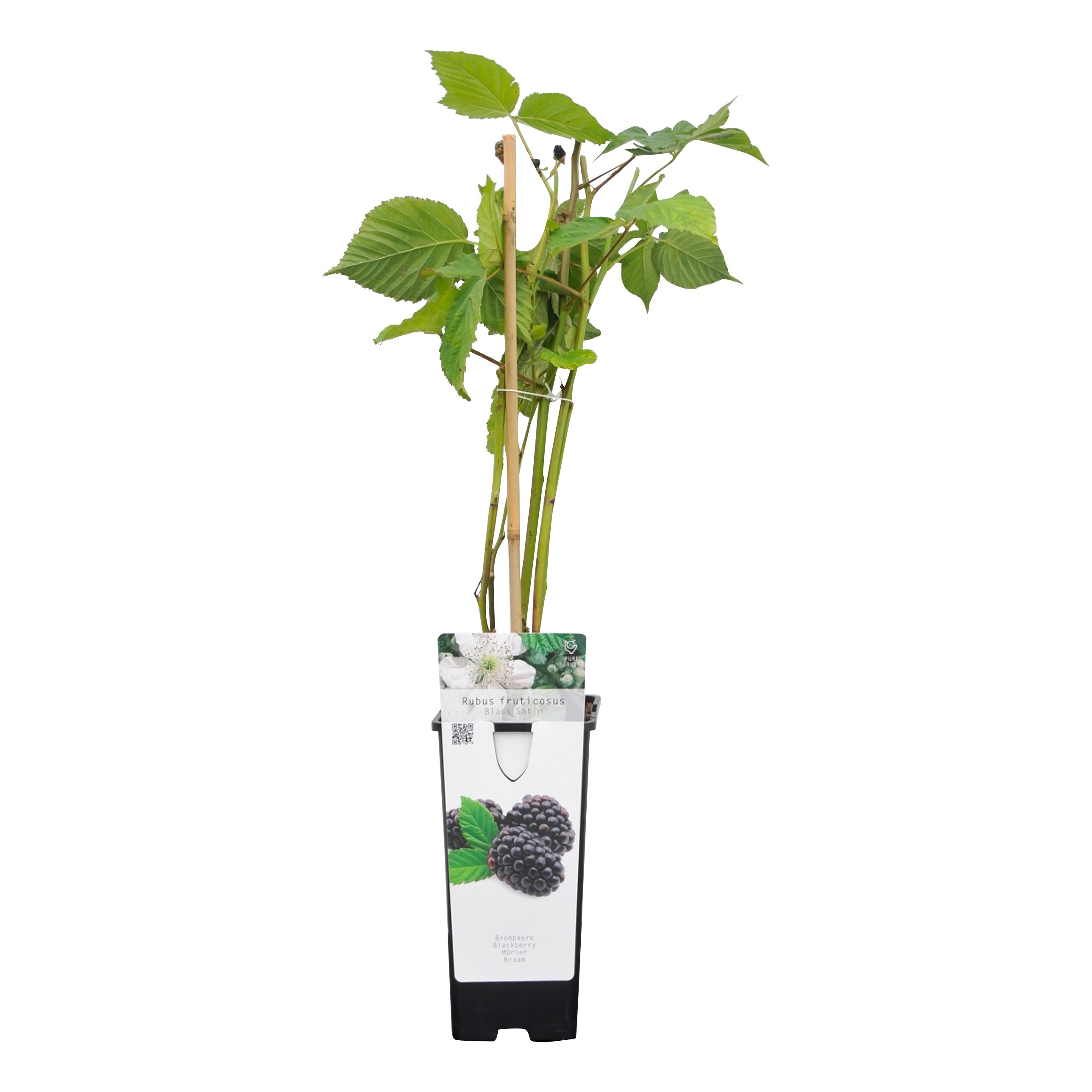 Die Pflanze ist nicht immergrün, liefert aber in jeder Vegetationsperiode frische Blätter und Früchte. Für ein gesundes Wachstum sind ein sonniger bis halbschattiger Standort und ein gut durchlässiger, fruchtbarer Boden notwendig. Wenn Sie die Hauptzweige an eine Wand, einen Zaun oder an einem Draht entlang führen, können Sie die Pflanze stützen. Regelmäßiger Schnitt nach der Fruchtproduktion hält die Pflanze in einem optimalen Zustand. Wählen Sie die stärksten jungen Zweige aus und binden Sie sie zusammen. Diese werden in der nächsten Saison neue Früchte tragen. Die richtige Pflege garantiert eine jährliche Rendite Ihres Rubus fruticosus Black Satin.
