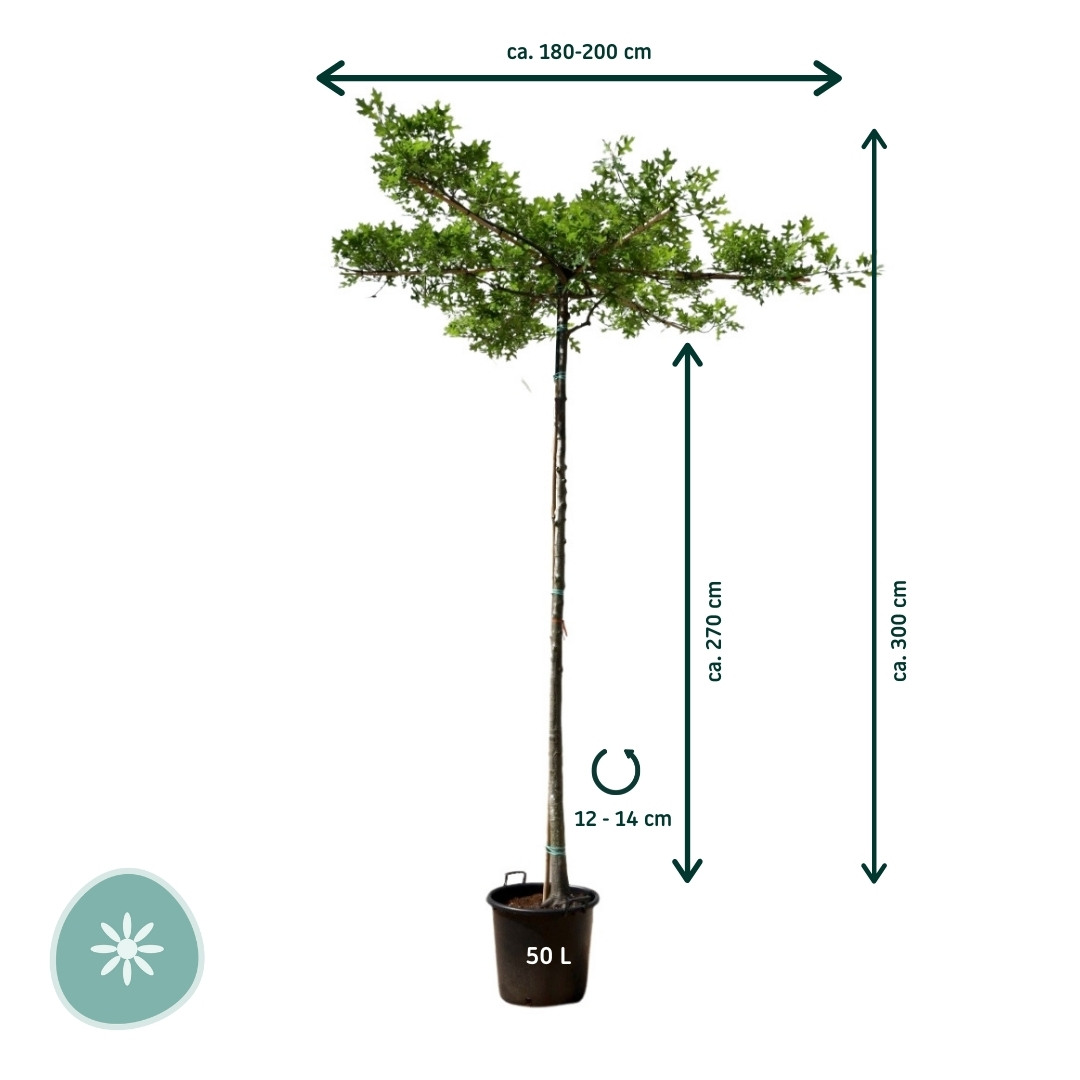 Die Dach-Quercus palustris, besser bekannt als die Sumpf-Eiche in Dachform, ist für Standorte geeignet, an denen sie sowohl Halbschatten als auch direktes Sonnenlicht erhält. Dieser Baum ist ziemlich... flexibel in Bezug auf den Bodentyp und verträgt feuchte Bedingungen gut. Achten Sie jedoch darauf, dass der Standort keine Probleme mit stehendem Wasser hat, da dies schädlich sein kann.