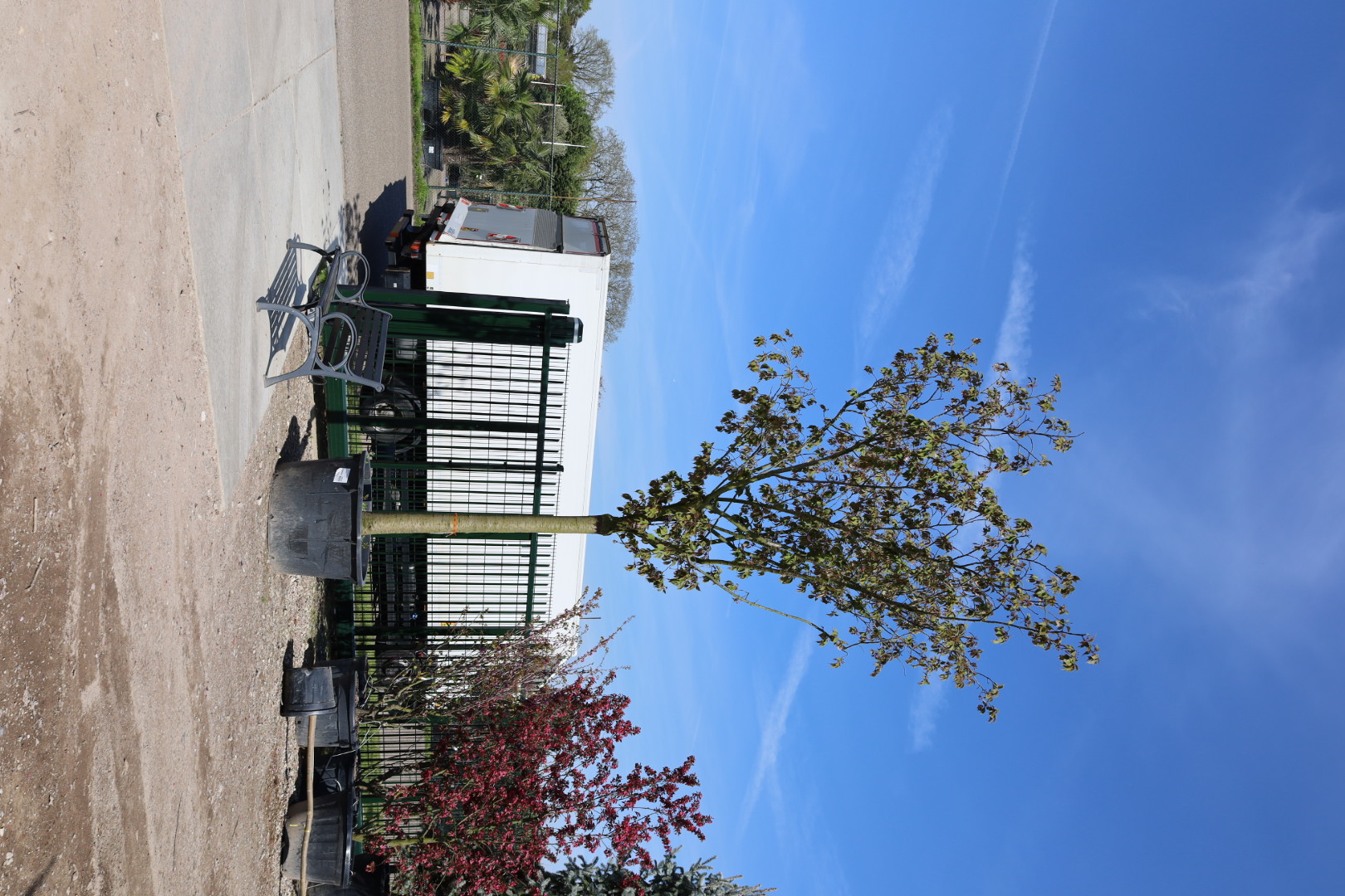 Wenn Sie diesen Prunus Baum pflanzen, ist es wichtig, dass er nicht schief steht, nicht umkippt und gut im Boden wachsen kann. Stellen Sie also sicher, dass ein von mehreren Baumpfahlen mit einem Gummiband am Baum gefüllt ist. Platzieren Sie eine an der Seite der häufigsten Windrichtung angeordnet sind, so dass der Baum von der Baumpfahl abwartet.